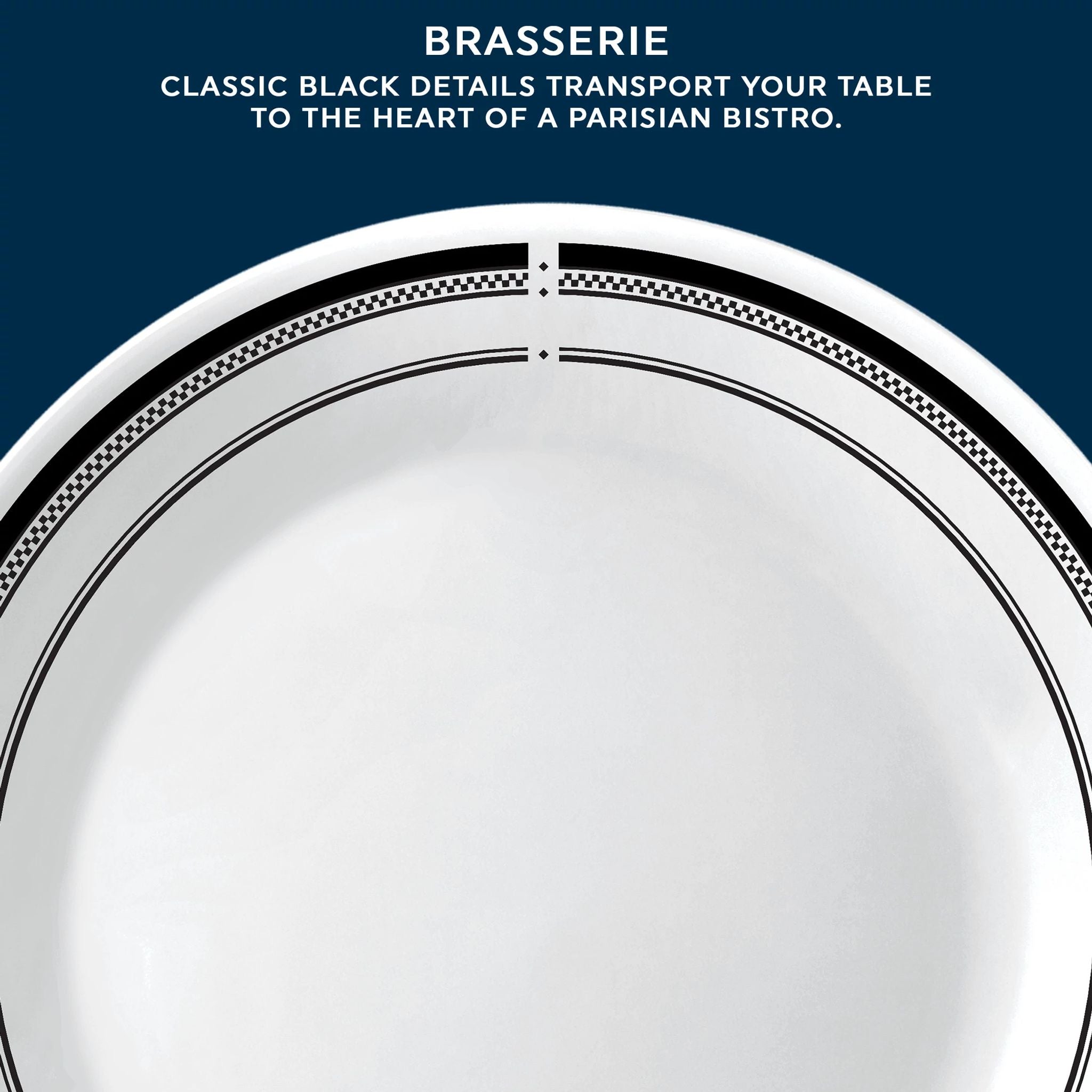 Classic black details transport your table to the heart of a Parisian bistro.