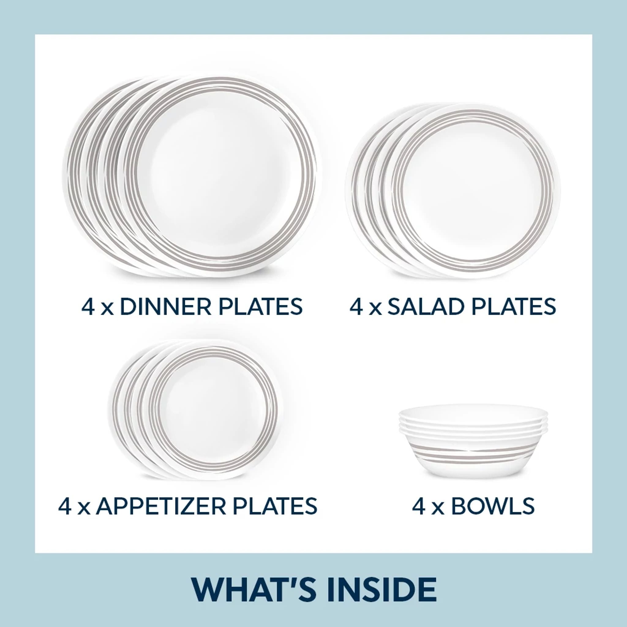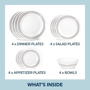 Corelle® Brushed Silver 16-piece Dinnerware Set. Service for 4